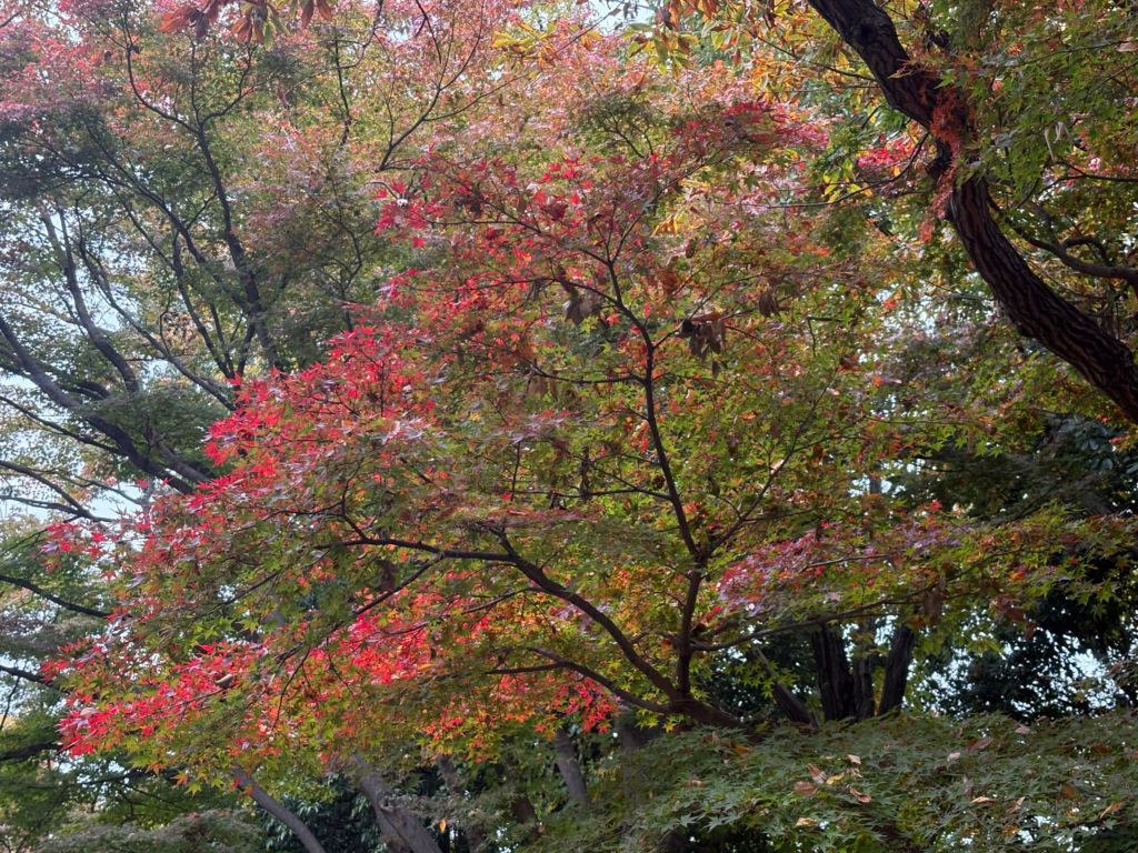 ほぼ毎日その公園に行っているので、緑葉が少しづつ枝の端の方から紅く色づいている変化を楽しむことができます。