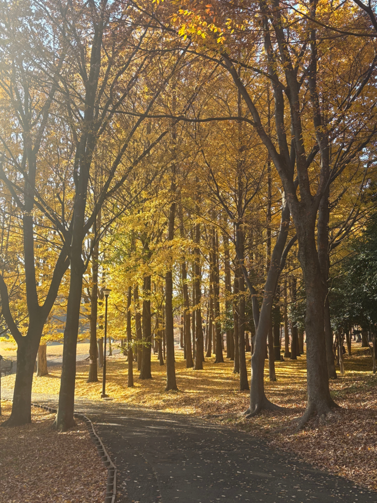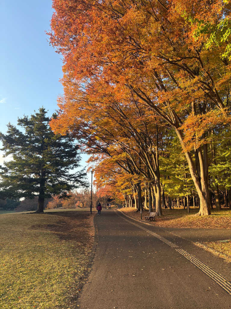 名所といわれる場所に行ってにぎやかな人混みの中で紅葉を鑑賞するのも好きですが、日頃趣味の散歩を兼ねて、家から歩いていける場所にある森林公園でも紅葉を存分に楽しんでいます。